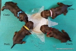 Moeder: Umsa van de Grensstek (Klik hier voor info en foto's) Vader: Rasmus von der Barke (Klik hier voor info en foto's) Geboren op: 02-12-2017 Er werder 4 puppies geboren. Op zaterdag 2 december 2017 zijn de pups van Umsa en Rasmus geboren. Het zijn 3 meisjes en 1 jongetje. Alle pups zijn reeds gereserveerd. De meisjes heten Comtessa Aafke en zij blijft bij ons. De andere twee meisjes heten Comtessa Caatje en Comtessa Dusty. Het jongetje heet Comte Charly. De pups zijn inmiddels met hun nieuwe baasjes meegegaan en hebben allemaal een gouden mandje gevonden. Klik op een foto voor een grote weergave.